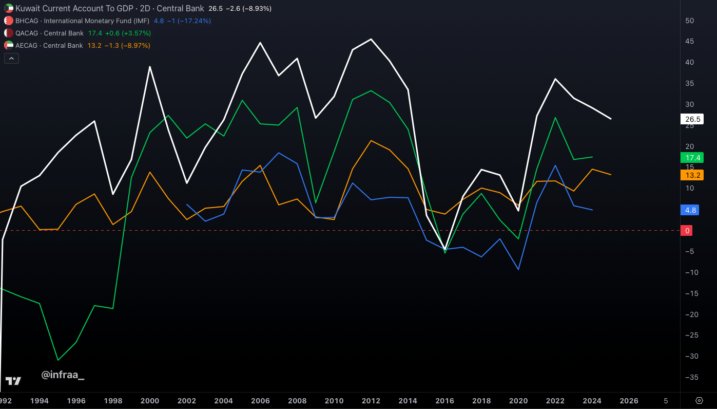 Remember that the Gulf Cooperation Council (GCC) countries are all huge surplus countries. Some current accounts in the GCC are a whopping 20% of GDP. By definition, this means they generally accumulate assets in the form of fx reserves.