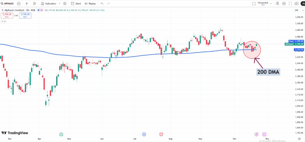 With a market capitalization of Rs. 53,355.85 crores on Thursday, the stock closed at Rs. 2804.35 a piece, which is currently taking support at the 200-day exponential moving average of Rs. 2,722.53 in a day’s Time Frame and currently trading at a discount price of upto 23 percent from the all-time high.