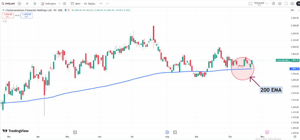When a stock trades above its 200 EMA, it is typically seen as being in a bullish trend, as this suggests strong long-term momentum. The 200 EMA can also act as a dynamic support or resistance level, helping traders identify potential entry or exit points.