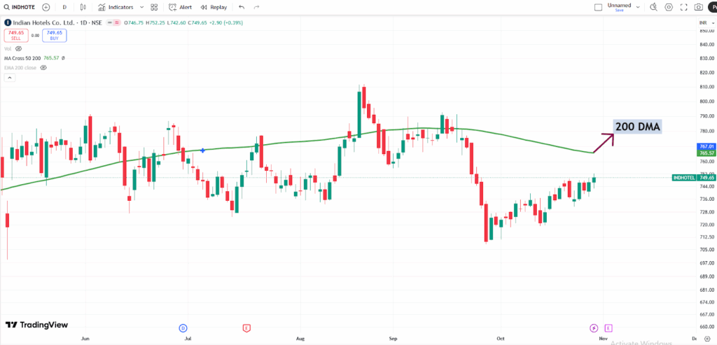 When a stock’s price is below the 200 DMA, it is often considered to be in a bearish phase. However, it could also present a buying opportunity if the stock shows signs of reversal or if it is oversold.
