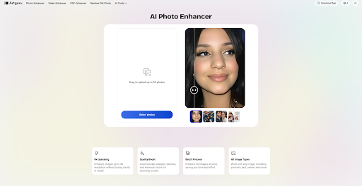 As a powerful AI photo enhancer and video upscaler, the Artguru platform works in web browsers and on both iOS and Android devices, enabling users to enhance their files instantly without learning complicated software.