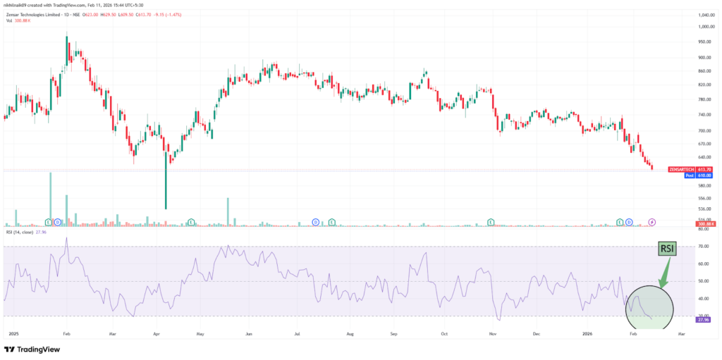 With a market capitalization of Rs. 13,873.25 crores on Wednesday, the stock closed at Rs. 610, with an RSI of 27.96, indicating that it is in the oversold zone, offering the potential for an upside bounce.
