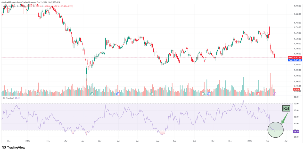 With a market capitalization of Rs. 5,97,010.32 crores on Wednesday, the stock closed at Rs. 1,472.40, with an RSI of 28.10, indicating that it is in the oversold zone, offering the potential for an upside bounce.