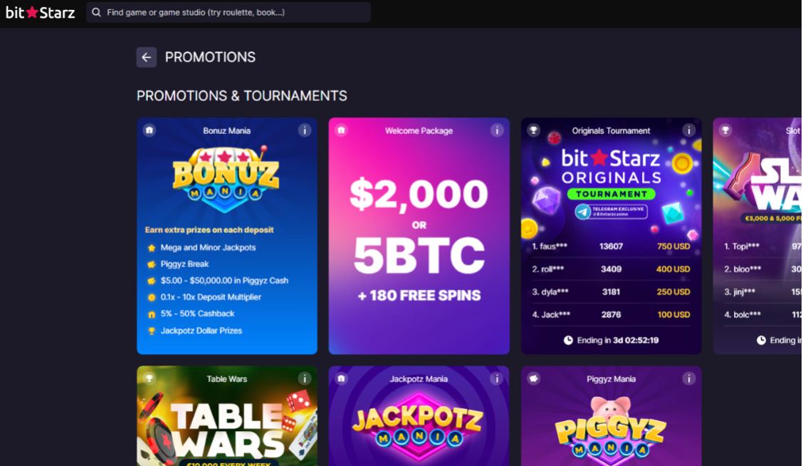 BitStarz keeps the excitement alive with regular promotions and tournaments, making it a top Canadian crypto casino. Key offerings include:
