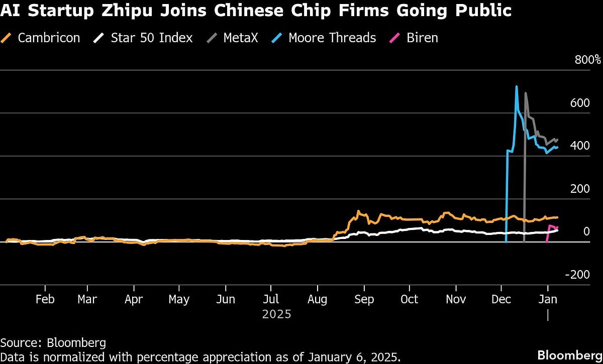 Zhipu’s listing comes as Chinese semiconductor firms — a key component in the AI supply chain — are rushing to raise funds. Graphics processing units maker Shanghai Iluvatar CoreX Semiconductor Co. will also debut on Thursday. Zhipu’s local rival MiniMax Group Inc. is set to list Friday after a $619 million IPO.