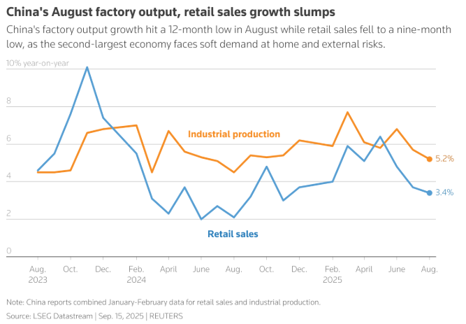 Concerns about China’s slowing economy also added to the cautious mood in global markets. In August, China reported weaker economic data, with industrial output growing 5.2 percent year-on-year, down from 5.7 percent in July, and retail sales rising 3.4 percent, slower than the previous month and below expectations. The labour market also showed signs of strain, with unemployment rising to 5.3 percent, while new home prices declined 0.3 percent month-on-month and 2.5 percent year-on-year. Weak consumer demand and a continuing property crisis increased worries about the health of the world’s second-largest economy and weighed on global investor sentiment.