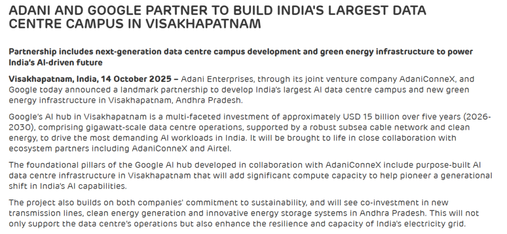 Source: https://www.adani.com/newsroom/media-releases/adani-and-google-partner-to-build-indias-largest-data-centre-campus-in-visakhapatnam