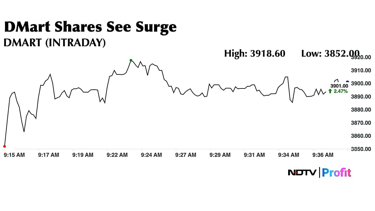Shares of Avenue Supermarts Ltd. rose to hit a one-month high in early trade on Monday after the company’s December quarter earnings report. During this period, DMart’s revenue grew over 13.3% to Rs 15,973 crore. The net profit of the company stood at Rs 856 crore compared to Rs 724 crore that it clocked in during the previous year.