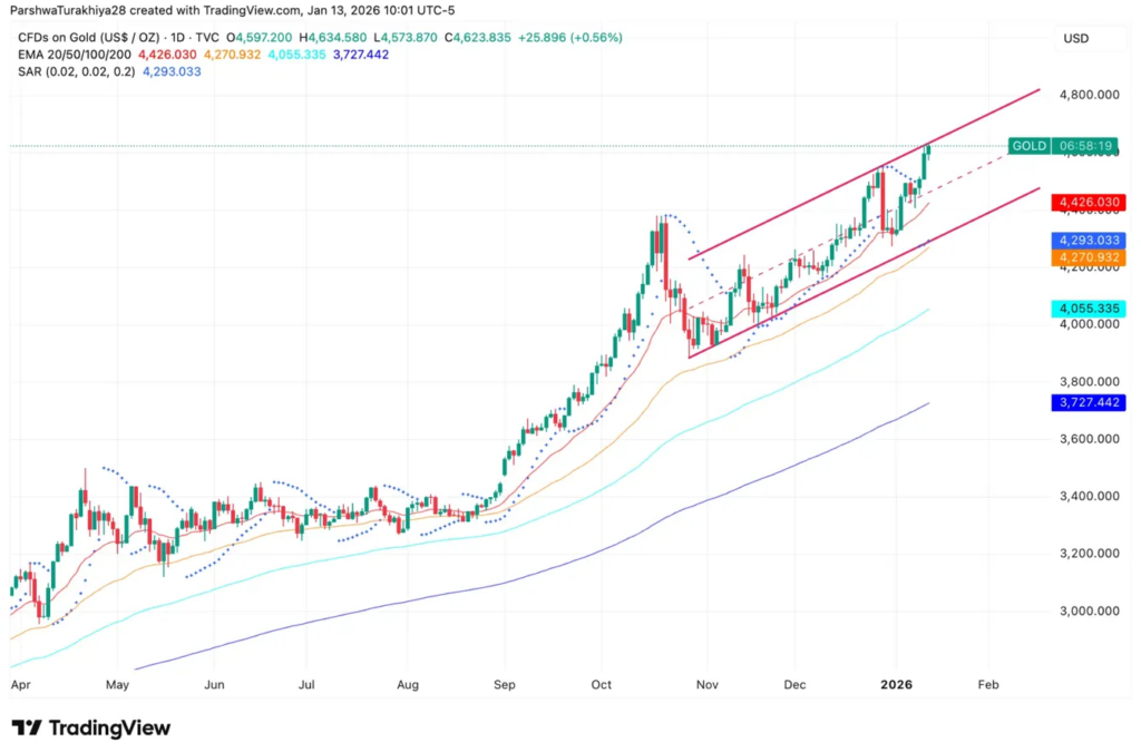 Gold pushed to a fresh all-time high of $4,620 per ounce, after December CPI data showed headline inflation held at 2.7% while core inflation remained at 2.6%—the lowest since 2021.