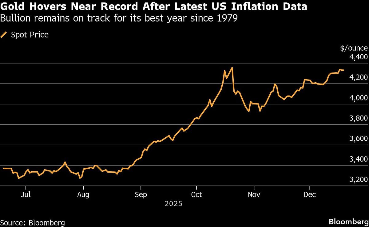 Spot gold was near $4,330 an ounce by mid-morning Friday in New York, and on track for a second weekly gain. The core US consumer price index rose at the slowest pace since early 2021, according to data released Thursday, bolstering the case for lower borrowing costs – a tailwind for non-yielding precious metals.