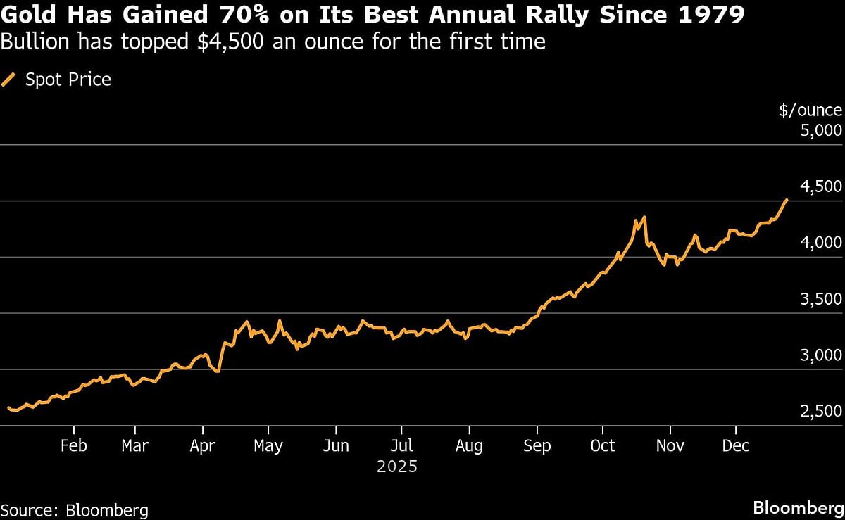 Gold’s recent run has been driven by its haven appeal amid escalating frictions in Venezuela, where the US has blockaded oil tankers. Traders are also betting the Federal Reserve will lower borrowing costs further next year, which would be a tailwind for non-yielding precious metals.