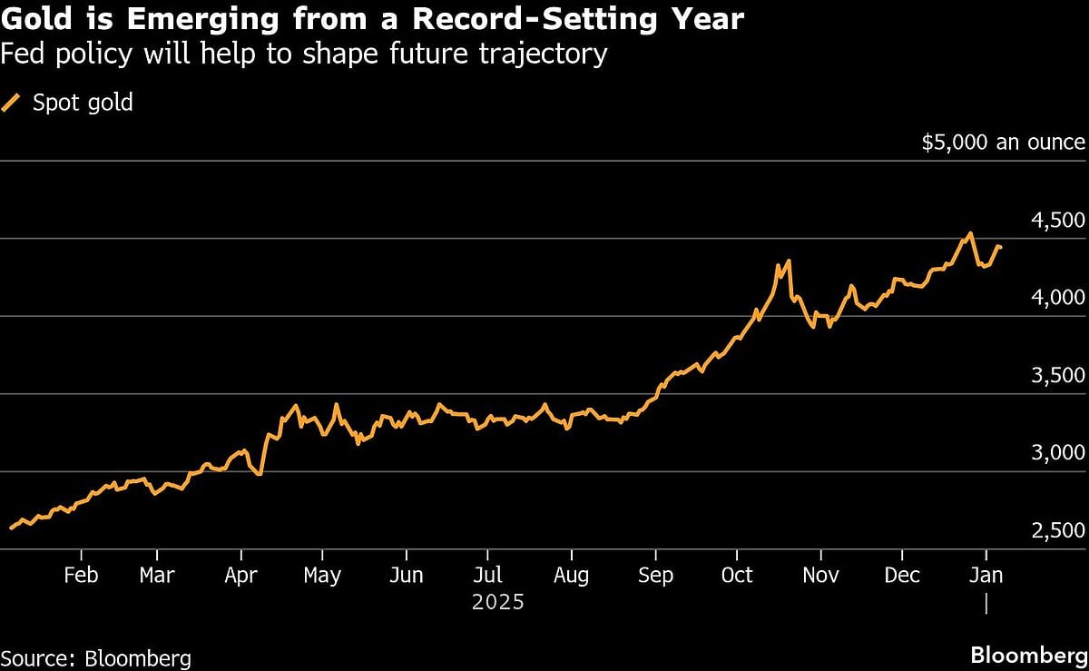 Bullion is trading roughly $100 below the all-time high of $4,549.92 hit on Dec. 26. Some leading banks forecast further gains this year, especially with the Fed expected to deliver additional interest-rate reductions and Trump reshaping the US central bank’s leadership. Goldman Sachs Group Inc. said last month that its base case was for a rally to $4,900 an ounce, with risks to the upside.