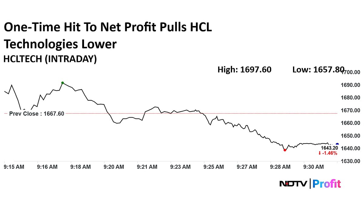 Shares of HCL Technologies Ltd. are in focus today, after the company’s net profit fell sequentially in the third quarter of the current financial year due to a one-time impact of new labour codes.