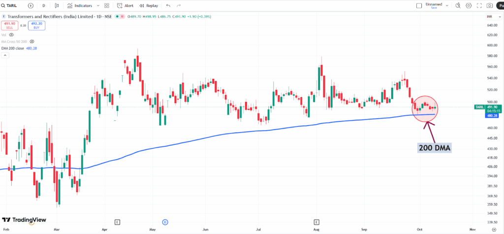 With a market capitalization of Rs. 14,756.15 crores on Friday, the stock closed at Rs. 491.60 a piece, which is currently taking support at the 200-day exponential moving average of Rs. 480.28 in a day’s Time Frame and currently trading at a discount price of upto 24 percent from the all-time high.