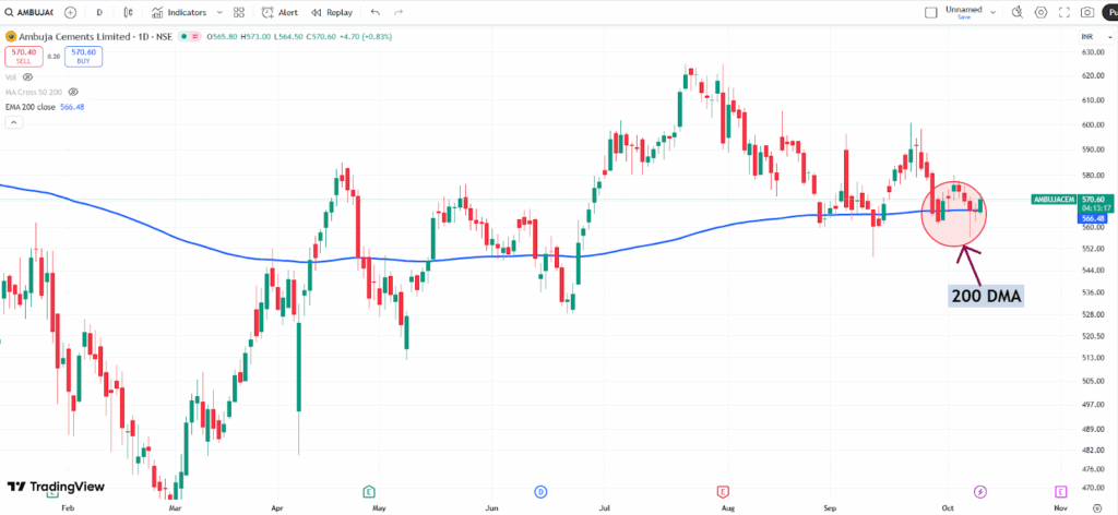 With a market capitalization of Rs. 1,40,634.40 crores on Friday, the stock closed at Rs. 568.95 a piece, which is currently taking support at the 200-day exponential moving average of Rs. 566.46 in a day’s Time Frame and currently trading at a discount price of upto 19 percent from the all-time high.