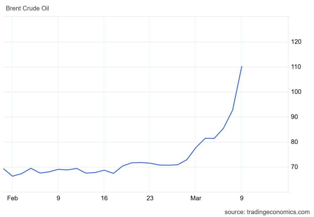 The moment the announcement broke, global oil markets jolted. U.S. crude futures surged more than 20% in early Monday trading. Brent crude jumped 18.85% to $110.17 a barrel its highest level since July 2022.