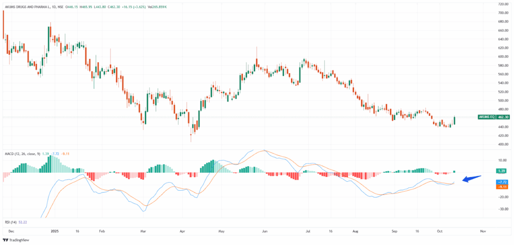 The stock has recorded a bullish MACD crossover, suggesting upward momentum, a potential short-term price rise, and a favorable buying opportunity.