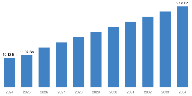 | Projected Market Size in 2034 | USD 27.80 Billion |
