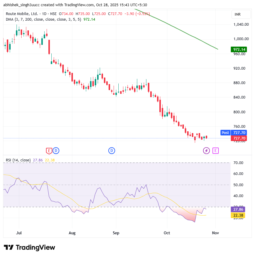With a market capitalization of Rs. 4,607.96 crores on Monday, the stock closed at Rs. 731.45 apiece, with an RSI of 27.86, indicating that it is in the oversold zone, offering the potential for an upside bounce.