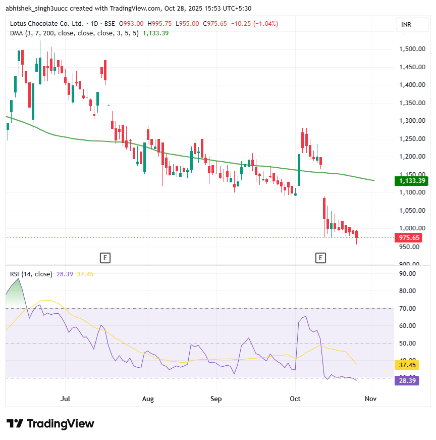 With a market capitalization of Rs. 1,246 crores on Monday, the stock closed at Rs. 970 apiece, with an RSI of 28.39, indicating that it is in the oversold zone, offering the potential for an upside bounce.