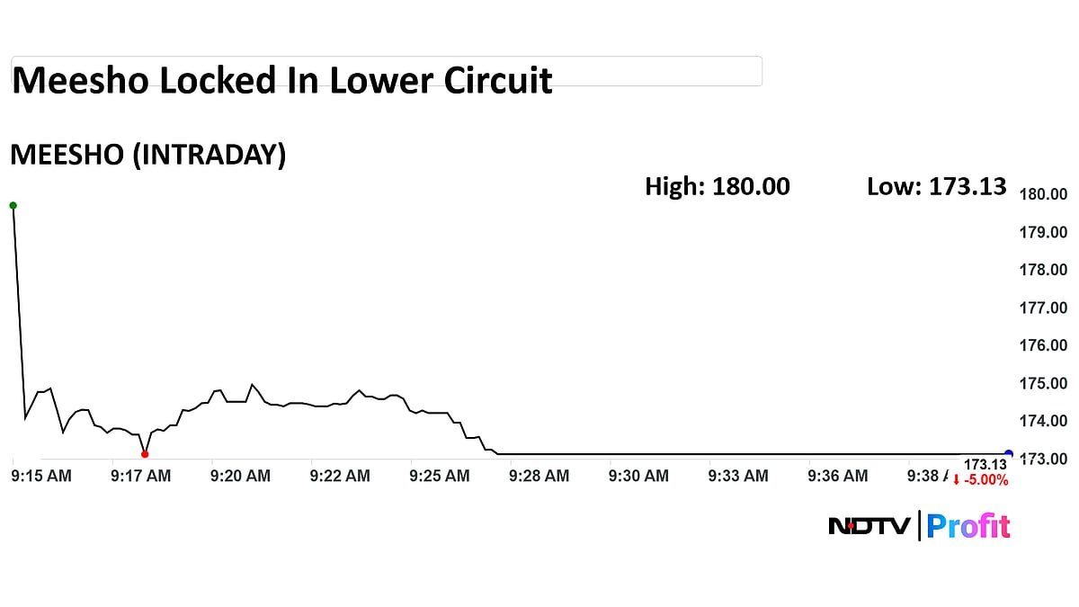 The e-commerce player’s stock is currently locked in the lower circuit at 5%, with the price at Rs 173.13 apiece.