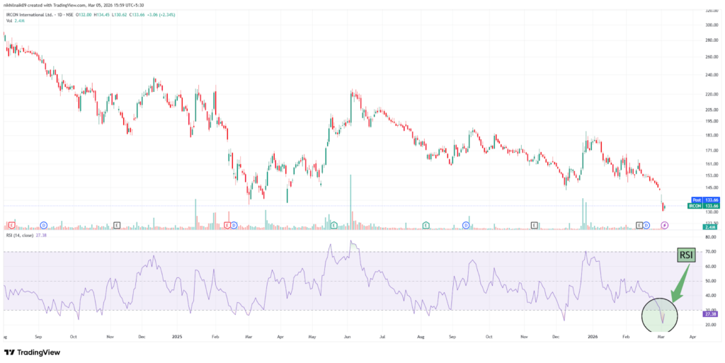 With a market capitalization of Rs. 12,593.51 crores on Thursday, the stock closed at Rs. 133.90, with an RSI of 27.38, indicating that it is in the oversold zone, offering the potential for an upside bounce.