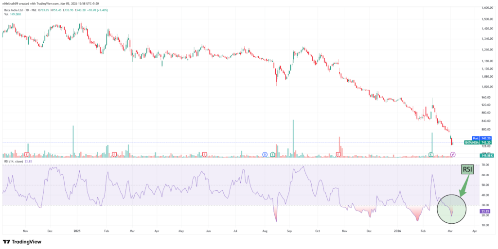With a market capitalization of Rs. 9,547.67 crores on Thursday, the stock closed at Rs. 742.85, with an RSI of 23.83, indicating that it is in the oversold zone, offering the potential for an upside bounce.