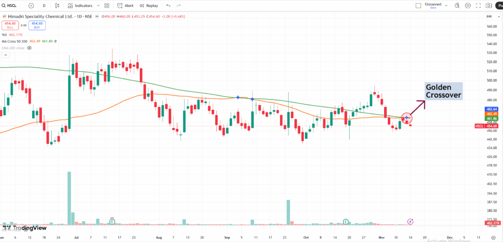 The golden crossover took place on November 13, 2025, at a price of Rs. 462.64 with low volumes of 360.87 K. The stock closed at Rs. 454.80 in Friday’s session, reflecting upto a 1 percent decline since the crossover.