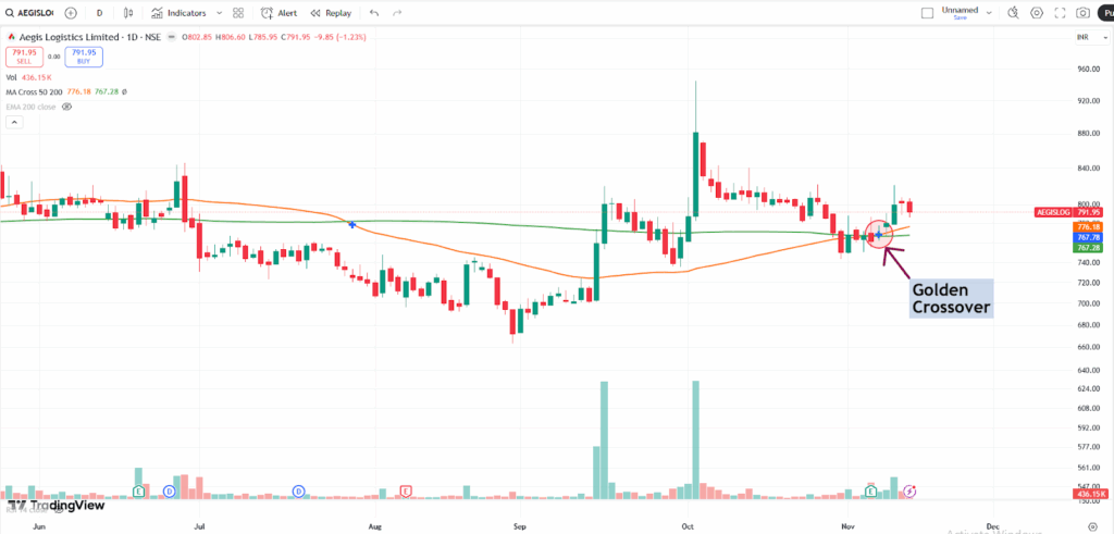 The golden crossover took place on November 10, 2025, at a price of Rs. 767.78 with decent volumes of 653.69 K. The stock closed at Rs. 789.20 in Friday’s session, reflecting upto a 3 percent rise since the crossover.