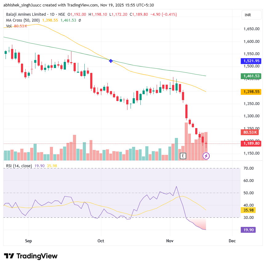 With a market capitalisation of Rs. 3,843 crores on Wednesday, the stock closed at Rs 1,186 apiece, with an RSI of 19.90, indicating that it is in the oversold zone, offering the potential for an upside bounce.