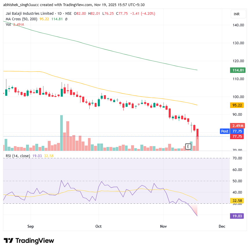 With a market capitalisation of Rs. 7,115 crores on Wednesday, the stock closed at Rs 78.0 apiece, with an RSI of 19.03, indicating that it is in the oversold zone, offering the potential for an upside bounce.