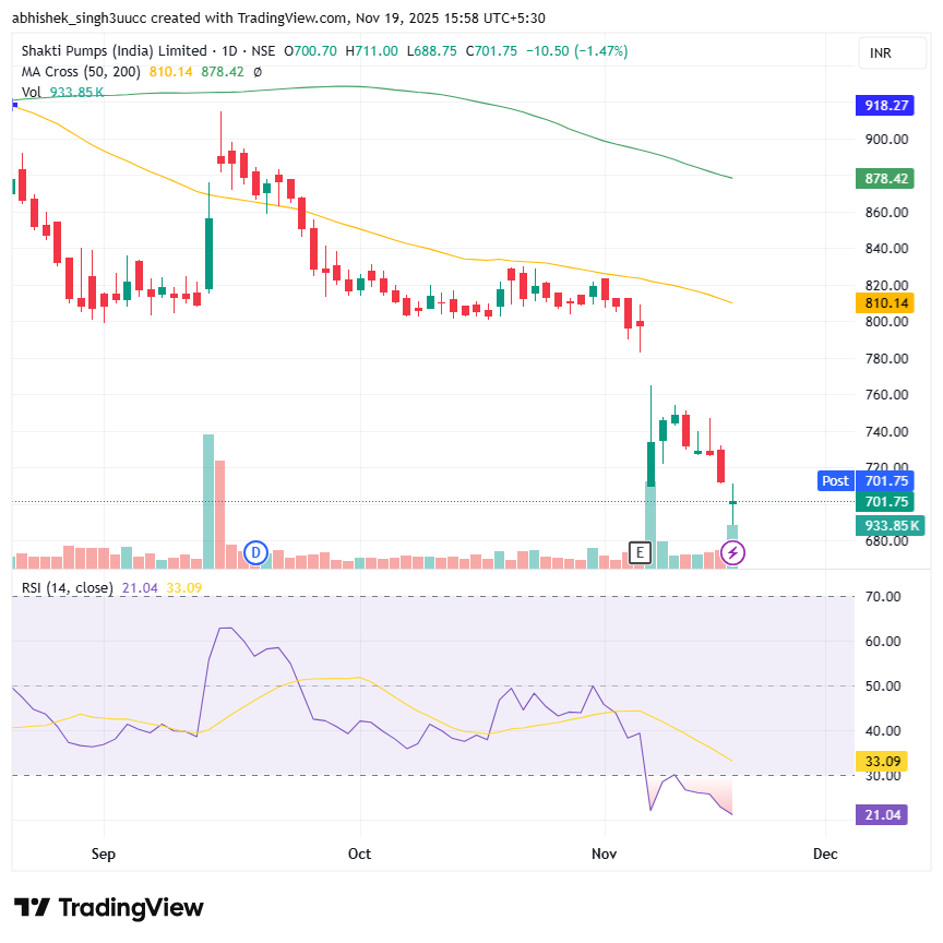 With a market capitalisation of Rs. 8,659 crores on Wednesday, the stock closed at Rs 702 apiece, with an RSI of 21.04, indicating that it is in the oversold zone, offering the potential for an upside bounce.