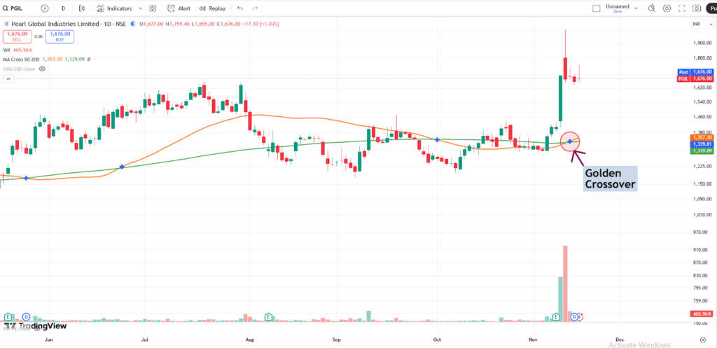 The golden crossover took place on November 14, 2025, at a price of Rs. 1,339.81 with moderate volumes of 599.47 K. The stock closed at Rs. 1,676 in Tuesday’s session, reflecting upto a 1 percent decline since the crossover.