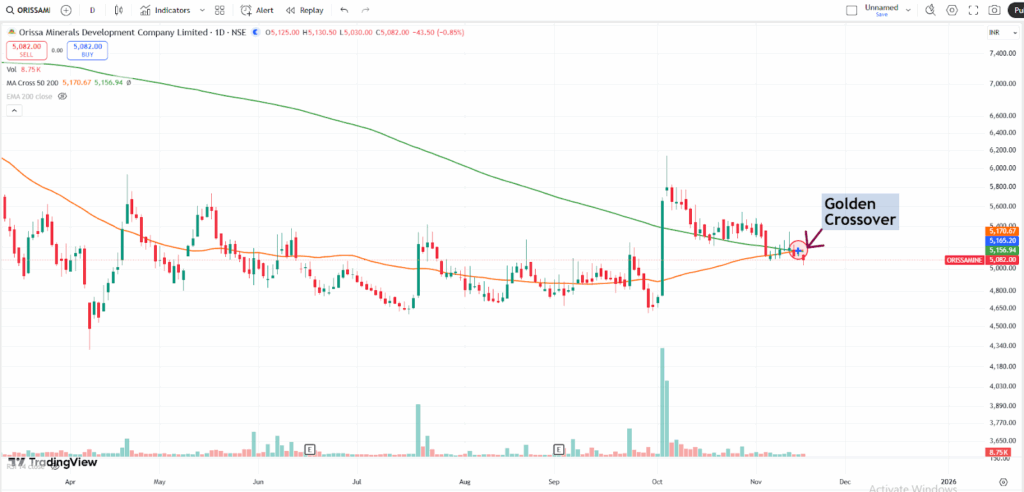 The golden crossover took place on November 17, 2025, at a price of Rs. 5,165.20 with low volumes of 5.91 K. The stock closed at Rs. 5,165.20 in Tuesday’s session, reflecting upto a 1 percent decline since the crossover.