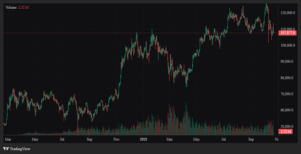 Bitcoin too saw similar fluctuations — from $110k in January 2025 to $75k in April, and back above $125k in September.