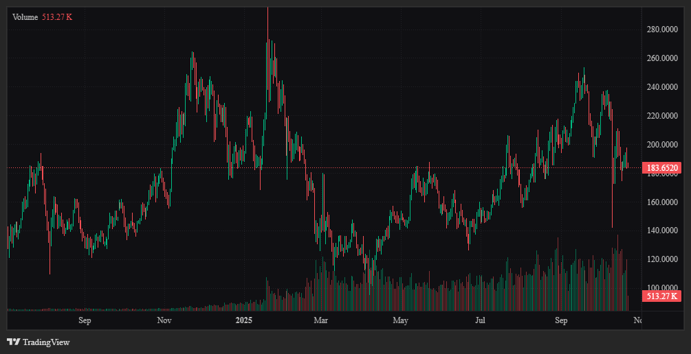 Cryptos are highly volatile assets. Unlike the Indian stock market, it’s common for crypto prices to swing 30–40% within months. Take Solana (SOL) for example — it was trading around $293 in January 2025, fell to $96 by April, and climbed back to over $250 by September.