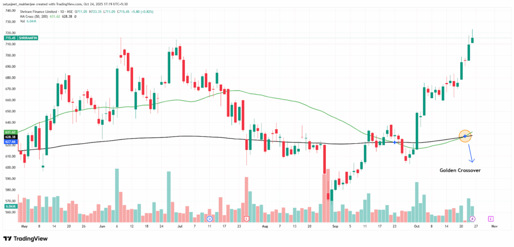 The golden crossover took place on October 21, 2025, at Rs. 627.66 with decent volumes of 675 K. The stock closed at Rs. 716.50 in Friday’s session, reflecting a 0.97 percent increase in the intraday trade.