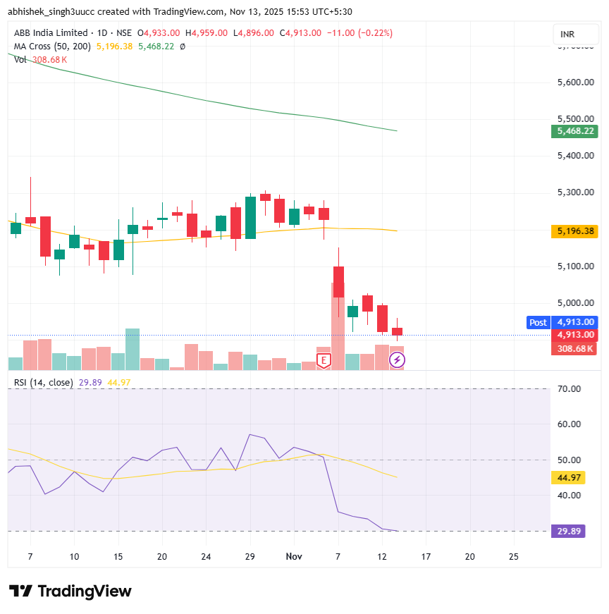 With a market capitalization of Rs. 1,04,036 crores on Thursday, the stock closed at Rs. 4,910 apiece, with an RSI of 29.89, indicating that it is in the oversold zone, offering the potential for an upside bounce.