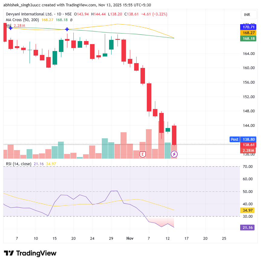 With a market capitalization of Rs. 17,096 crores on Thursday, the stock closed at Rs. 139 apiece, with an RSI of 21.16, indicating that it is in the oversold zone, offering the potential for an upside bounce.