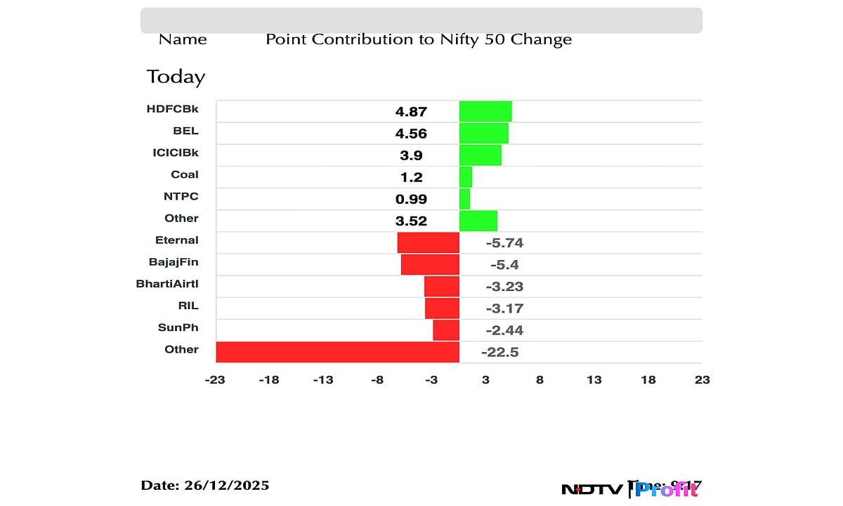 In the previous session on Wednesday, the benchmarks ended lower. The Nifty 50 ended 0.13% lower at 26,142.10 while BSE Sensex closed 0.14% lower at 85,408.70.