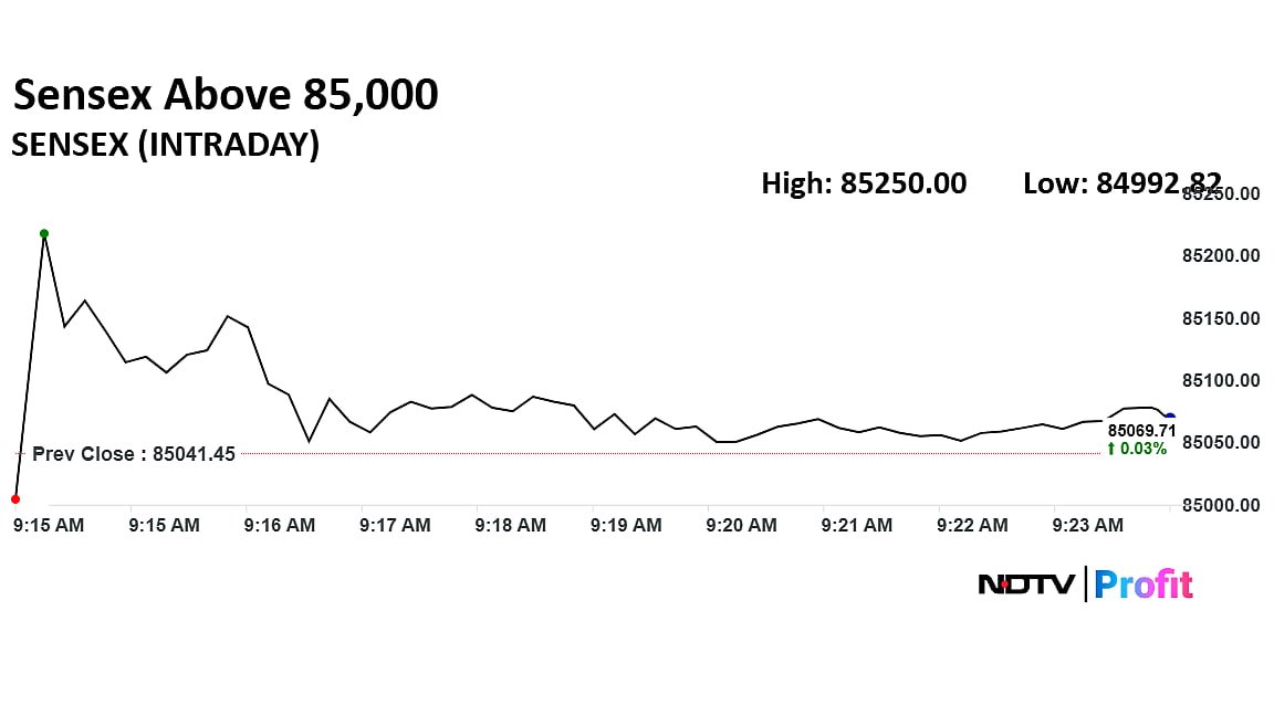 The NSE Nifty 50 and BSE Sensex opened mixed on Monday. The Nifty 50 opened 0.08% higher at 26,106.80 and Sensex opened 0.04% down at 85,004.75. However, minutes after open the markets rose with Nifty and Sensex rising as much as 0.25%.