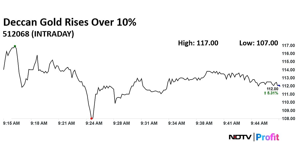 The shares of Deccan Gold were in focus on Wednesday as it rose over 10%. The company’s management while talking to NDTV Profit said that profit after tax in the next year is expected to be at Rs 200 crore.