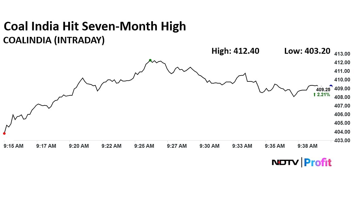 The shares of Coal India were in focus on Wednesday as it hit seven-month high after it received approval for listing of South Eastern Coalfields Ltd. The scrip rose as much as 3% to Rs 412.40 apiece on Wednesday, the highest level since May 21. It pared gains to trade 2.29% higher at Rs 409.55 apiece, as of 9:39 a.m. This compares to a 0.14% advance in the NSE Nifty 50 Index.