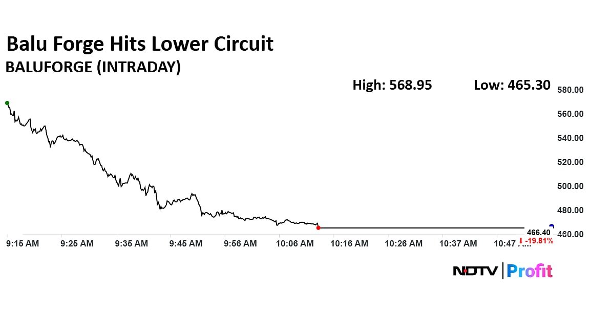 Balu Forge on Wednesday was locked in lower circuit after media reports claimed Income Tax Department was conducting searches at Balu Forge Industries.