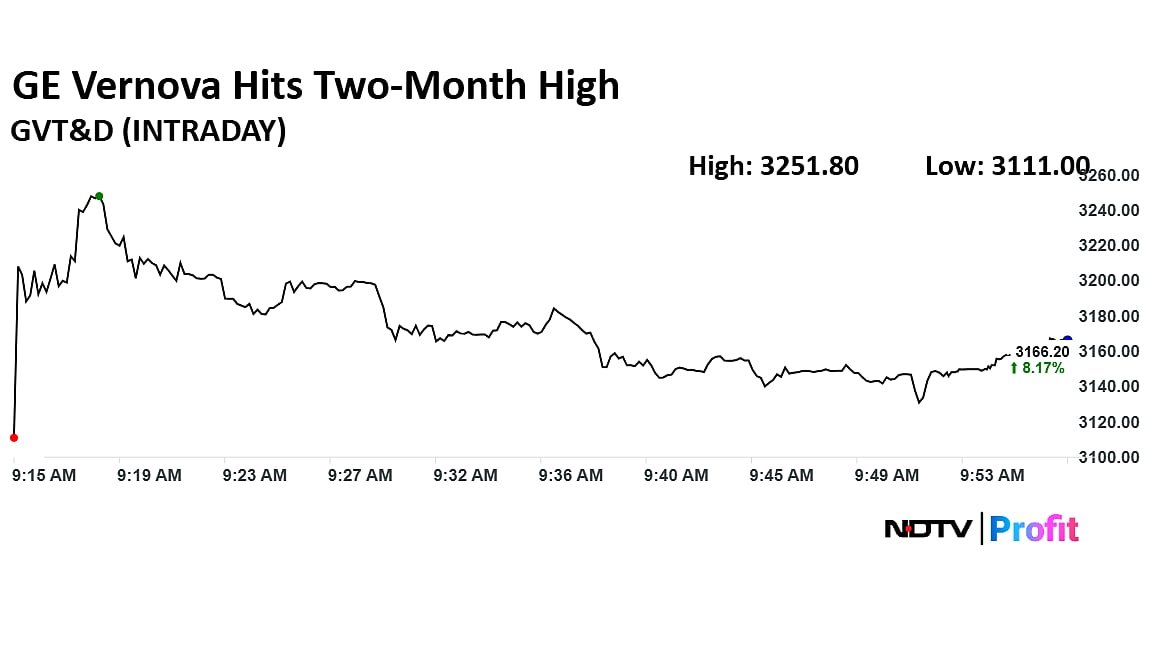 The shares of GE Vernova T&D India rose 11% to hit nearly two-month high. This comes after the company wins contract from AESL Project for 2,500 MW terminal station.