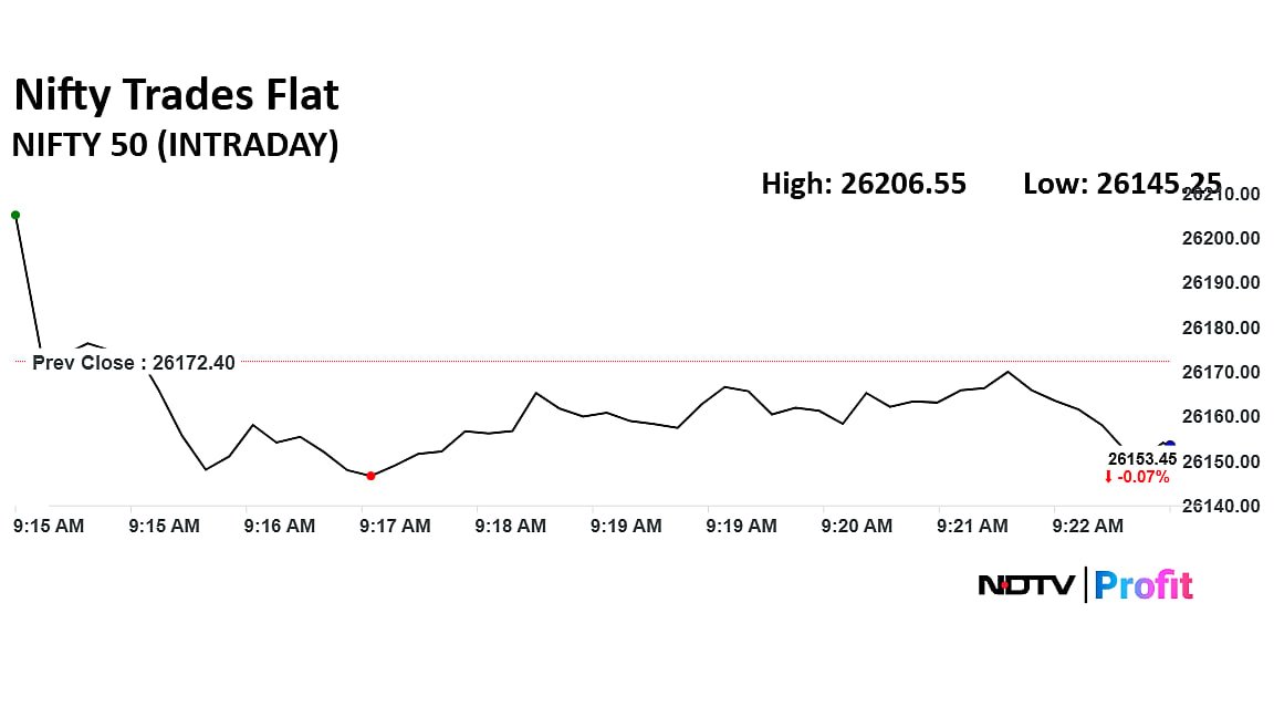 At pre-open, the NSE Nifty 50 was trading 32.80 points or 0.13% higher at 26,205.20. The BSE Sensex was up 0.14% or 122.62 points at 85,690.10.