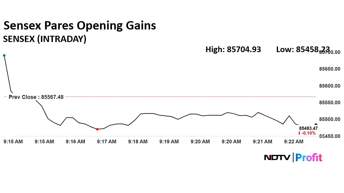 Sensex fell 0.26% to 85,342.99 before it pared losses to trade 0.02% higher at 85,580.95.