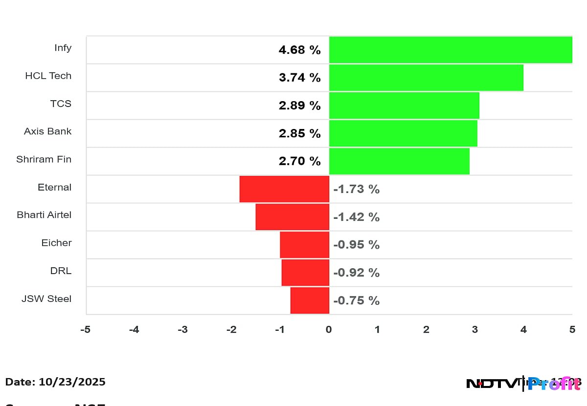 • Nifty IT marks as a top sectoral gainer, gains led by Infosys & HCL tech