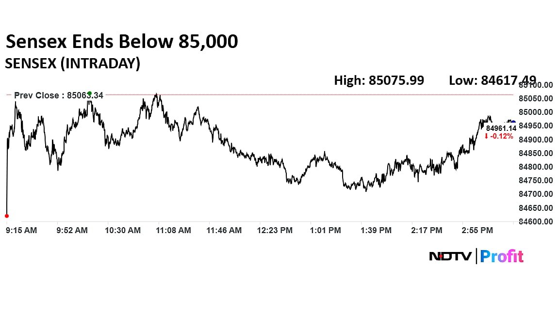 Sensex ends 102.20 points or 0.12% down at 84,961.14.