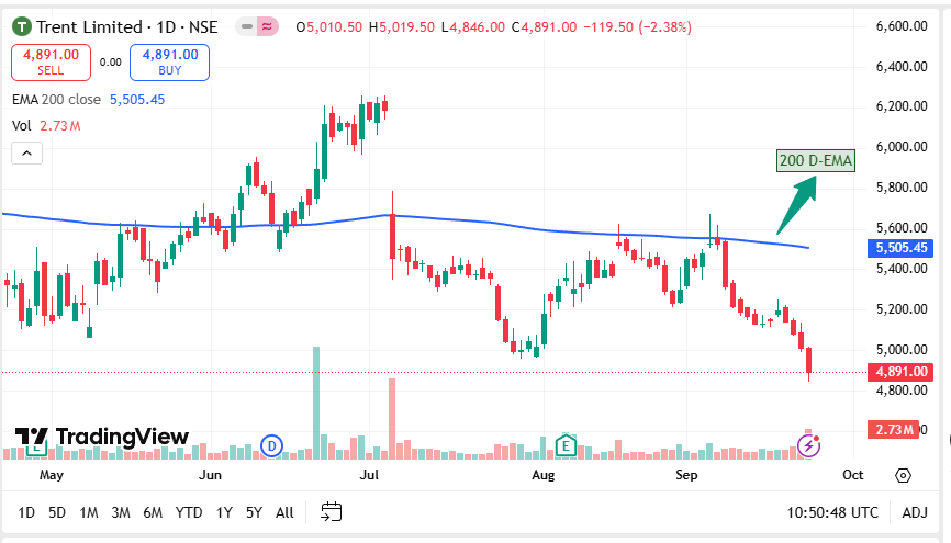 When a stock trades above the 200-day EMA, it usually signals strength and buyer interest, while trading below it often suggests weakness and a bearish trend. However, a stock below this level can also present a potential buying opportunity if it shows signs of reversal or appears oversold.